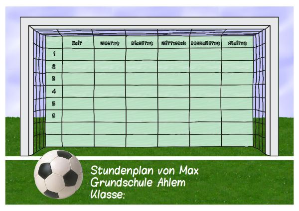 Mit dem wunderschönen Stundenplan macht die Schule Spaß! Der Stundenplan ist das Netz des Tores und der Ball liegt schussbereit davor...